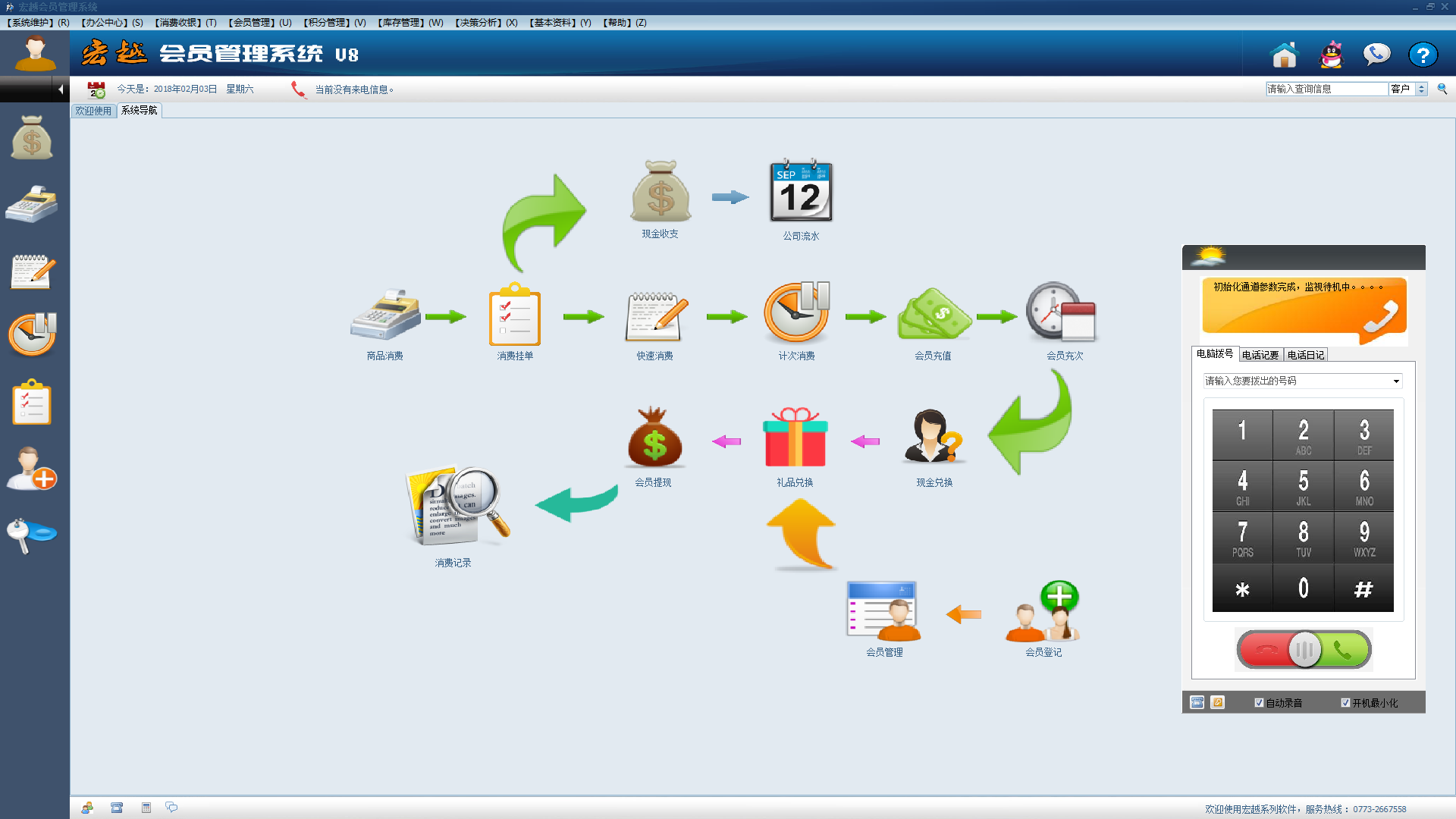宏越會員管理系統(tǒng)是一套功能強大的會員管理軟件 本系統(tǒng)集“會員管理、積分管理、收銀結(jié)賬、商品進消存、短信、來電彈屏、錄音、營銷分析、統(tǒng)計報表"等功能于一體。并將會員消費、計次消費、積分兌換、商品庫存、會員、員工,商家信息等緊密結(jié)合起來,通過簡單方便的操作,就可進行會員制管理,會員卡管理,會員積分管理,會員消費管理的需求,科學(xué)的管理方法會給您帶來無限的效益,本產(chǎn)品界面美觀大方、是您會員管理明智的選擇。